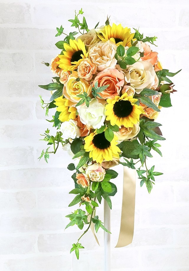| 参考商品名 | オトナスタイルの向日葵&薔薇のセミロングキャスケードブーケ |
