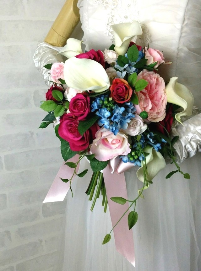 | 主な使用花材 | カラー、薔薇、ミニバラ、ブルー系の花(ライラック、紫陽花、ブルースター、ブバリア等から花材入荷状況にて。)グリーン類 |