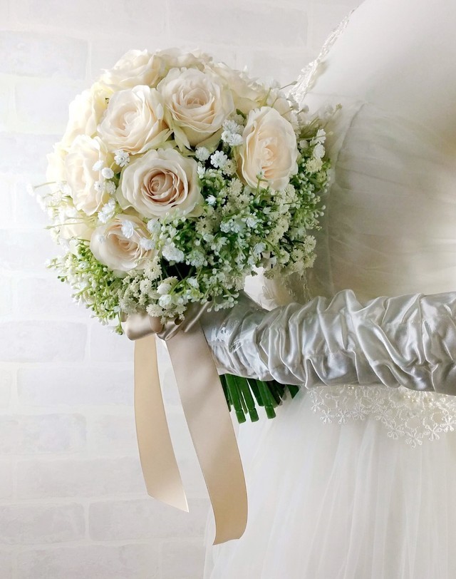 | 参考商品名 | クリーム色の薔薇&カスミ草のレトロクラッシックなクラッチブーケ |