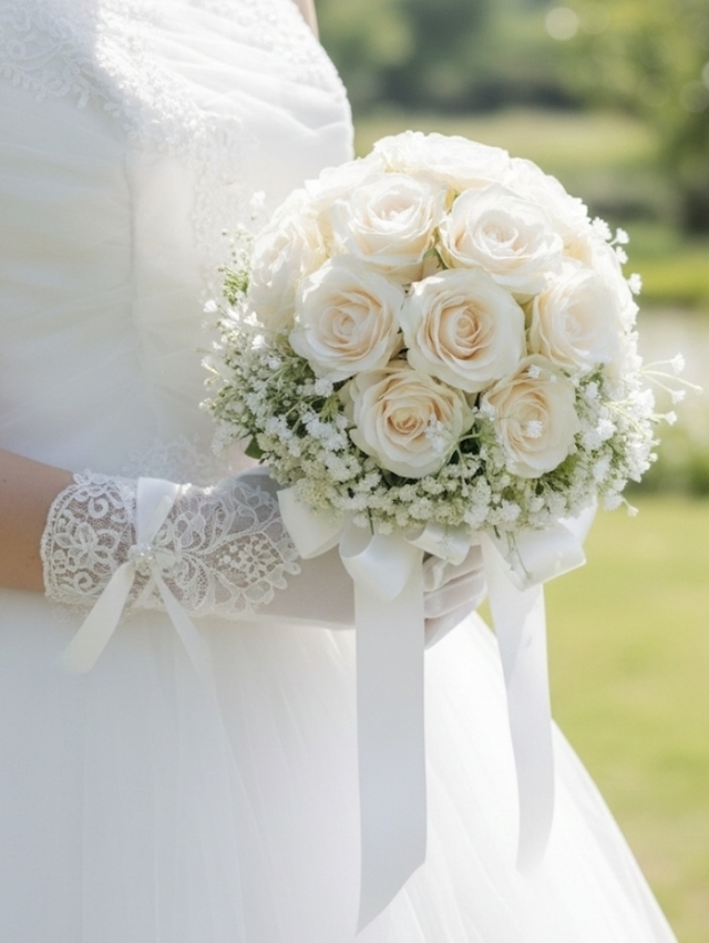 | 参考商品名 | クリーム色の薔薇&カスミ草のレトロクラッシックなドームスタイルブーケ |